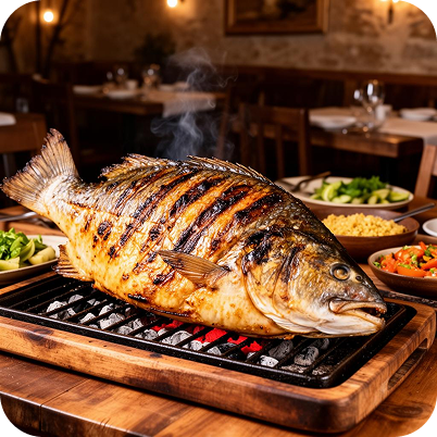 O prato que dá nome ao restaurante é uma das especialidades da casa. Preparado com cuidado e servido para compartilhar, o Pintado na Brasa se tornou parte da identidade do local.